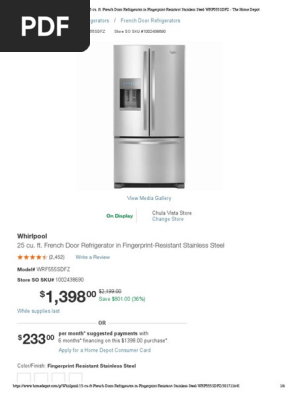 Whirlpool 25 Cu Ft French Door Refrigerator In Fingerprint Resistant Stainless Steel Wrf555sdfz The Home Depot Pdf Refrigerator Building Engineering